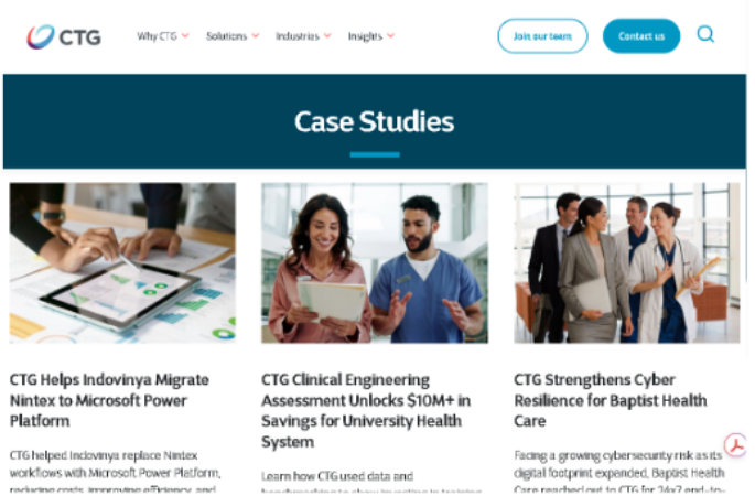 Built case studies and customer stories from marketing data, service details, and stakeholder input. The work turned product, campaign, and customer information into clearer proof for medical practice owners, office managers, and healthcare buyers.
